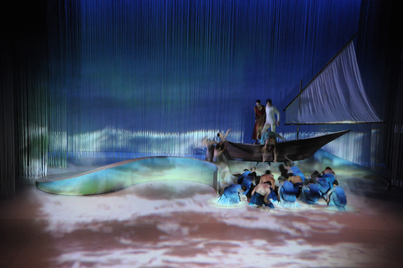 « The sea storm was a triumph of Tanguy Alanou’s video art. The billows surged and swelled and the waves breaking onto the stage were so realistic one could almost taste the salt. »